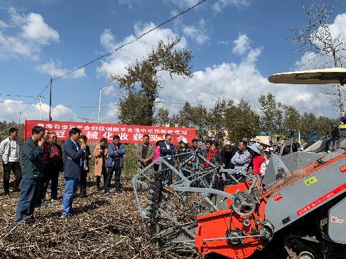 蠶豆全程機械化收獲機改制是在蠶豆產業(yè)平臺的總體領導下,湟中旱作轉化基地聯(lián)合湟中縣農機推廣站技術人員針對不同蠶豆品種將“星光至尊”油菜聯(lián)合收割機改制為適合于小粒蠶豆“青海13號”收獲、“艾禾”縱軸流收割機改制為適合于大粒蠶豆“青蠶14號”收獲的蠶豆專用機器。現場進行了兩種機器的實地收獲展示,破損率在1%左右,脫凈率在98%以上,田間損失率≤5%,收獲效果良好。蠶豆全程機械化收獲機器的改制成功,使蠶豆生產效率提高20倍以上,勞動成本降低,節(jié)約成本1000萬元以上,支撐區(qū)域輪作體系建設,為促進蠶豆產業(yè)轉型升級,擴大新型農業(yè)主體的規(guī)模化種植,加快農業(yè)現代化進程、實現新時代農業(yè)“一優(yōu)兩高”做出重要貢獻。