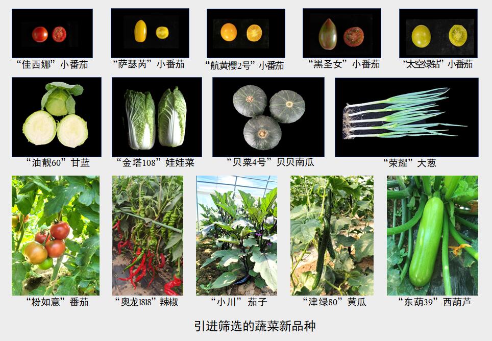 2、引進篩選:以國家蔬菜產(chǎn)業(yè)體系為主要渠道,引進新品種207個,評價篩選出優(yōu)良新品種14個,包括黃瓜品種2個(津綠80黃瓜、京研玉甜 156 迷你黃瓜)、番茄6個(粉如意中果型番茄、綠蜜珠櫻桃番茄等)以及油靚60甘藍、東葫39西葫蘆、金塔108娃娃菜、榮耀大蔥、貝栗4號南瓜、奧龍1818辣椒、小川紫萼長茄。