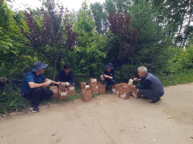 我省春季倒春寒頻發(fā),果樹栽培常因低溫凍害而減產(chǎn)甚至絕產(chǎn),給生產(chǎn)者造成嚴(yán)重經(jīng)濟(jì)損失。2023 年春季,為防止低溫凍害發(fā)生,科技特派員雖然指導(dǎo)開展多種措施預(yù)防春季寒潮危害,但仍因氣溫回升慢,寒潮頻發(fā)而使服務(wù)合作社所屬果樹示范基地的梨、杏等遭受了一定程度的凍害,座果率降低。為解決果園春季凍害發(fā)生后效益低下、果園經(jīng)營難得的問題,工作站科技特派員在貴德縣軍軍果林種植專業(yè)合作社果樹示范基地,利用郁閉高的成齡果林林下開展食用菌種植試驗(yàn),以期通過林下復(fù)合經(jīng)營的方式為合作社長期持續(xù)經(jīng)營尋找新途徑,拓寬增收新路子。通過林下復(fù)合經(jīng)營,實(shí)現(xiàn)“以園養(yǎng)園,以短補(bǔ)長”的目的。使果園在受到凍害時(shí),以林下產(chǎn)出補(bǔ)充林上損失;在果園豐產(chǎn)時(shí),實(shí)現(xiàn)林上林下雙豐收
