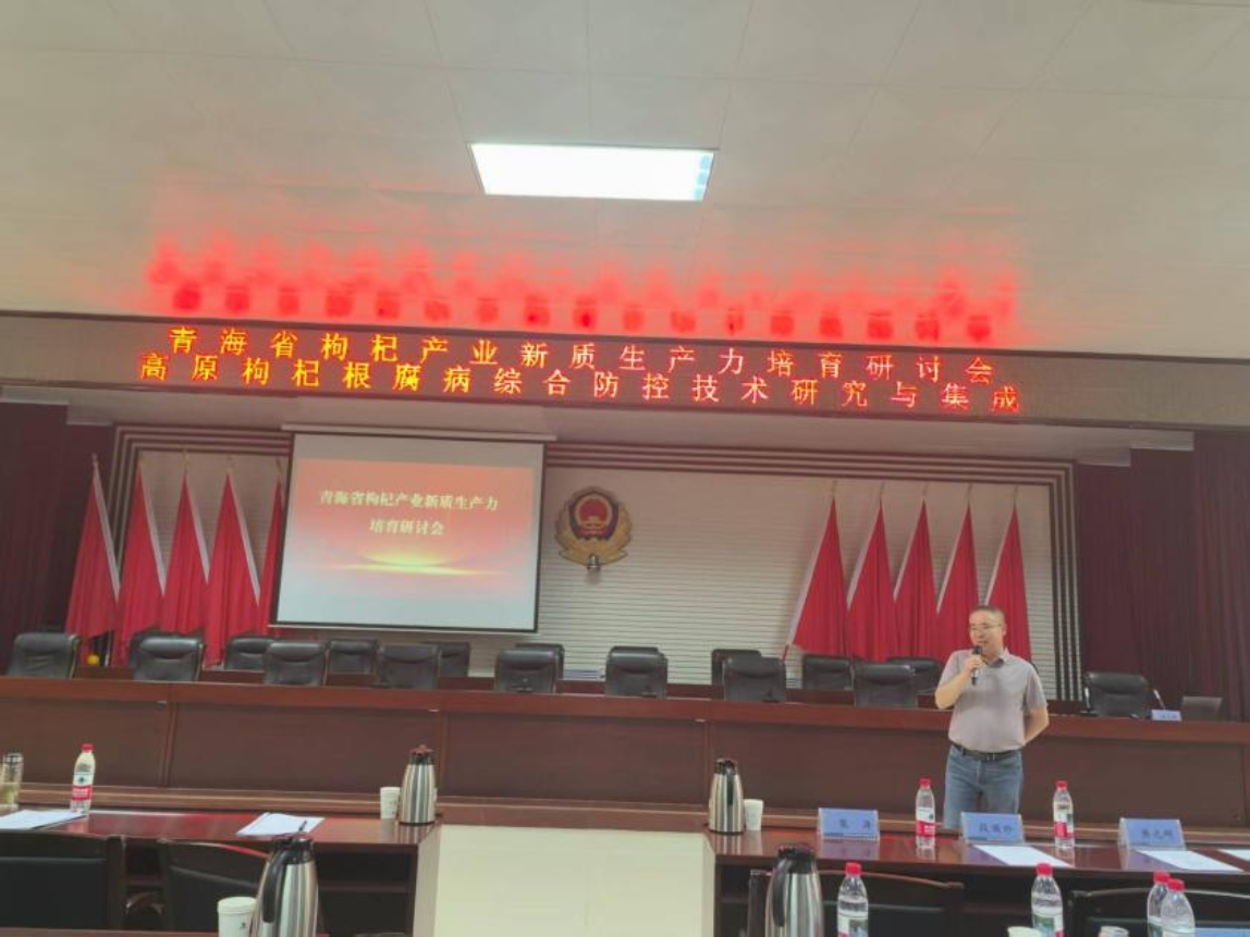 為推動青海省枸杞產(chǎn)業(yè)的升級轉(zhuǎn)型,實現(xiàn)高質(zhì)量發(fā)展,2025年7月26日,由青海大學(xué)農(nóng)林科學(xué)院林業(yè)所主辦、青海諾木洪農(nóng)林產(chǎn)業(yè)有限公司協(xié)辦的“青海省枸杞產(chǎn)業(yè)新質(zhì)生產(chǎn)力培育”研討會在青海諾木洪農(nóng)林產(chǎn)業(yè)有限公司舉行。本次研討會由“高原枸杞根腐病綜合防控技術(shù)研究與集成”、“高抗大果枸杞良種及大面積省力化栽培與采收技術(shù)集成與示范”、“高原地區(qū)枸杞良種選育及優(yōu)良無性系繁育技術(shù)示范”項目支持。