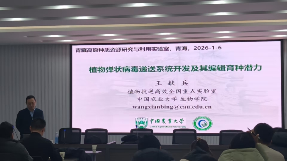 會(huì)議由青海大學(xué)副校長劉玉皎研究員主持,重點(diǎn)圍繞植物病毒作為新型編輯載體的研究及蠶豆相關(guān)研究領(lǐng)域的最新進(jìn)展開展學(xué)術(shù)交流。會(huì)議第一階段,特邀中國農(nóng)業(yè)大學(xué)王獻(xiàn)兵教授作題為《植物彈狀病毒遞送系統(tǒng)開發(fā)及其編輯育種潛力》的專題匯報(bào)。匯報(bào)開篇系統(tǒng)梳理了植物彈狀病毒的研究背景,闡明了該類病毒在植物基因編輯領(lǐng)域的獨(dú)特優(yōu)勢(shì)與研究價(jià)值;隨后,詳細(xì)闡述了彈狀病毒編輯載體開發(fā)的技術(shù)路徑、關(guān)鍵難點(diǎn)及突破成果,深入解析了載體構(gòu)建的核心原理與優(yōu)化策略;最后,王獻(xiàn)兵教授對(duì)彈狀病毒編輯技術(shù)在作物育種領(lǐng)域的應(yīng)用前景進(jìn)行了全面展望,指出該技術(shù)在培育優(yōu)質(zhì)、抗逆作物新品種方面具有巨大潛力,為相關(guān)領(lǐng)域科研人員的后續(xù)研究方向提供了重要的思路與參考。